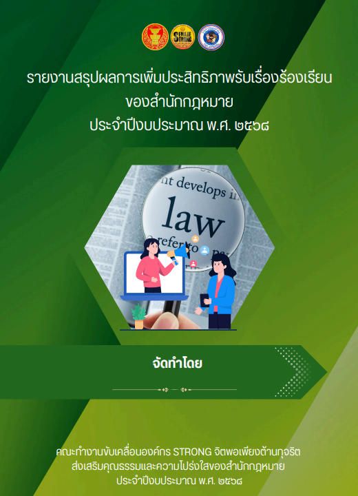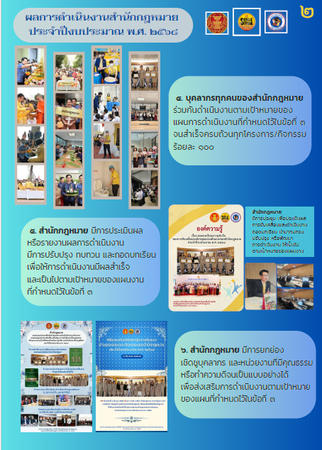 นายโสภณ ชาตบุษย์จารุ ผู้อำนวยการสำนักกฎหมาย พร้อมด้วยบุคลากรสำนักกฎหมายประกาศเจตนารมณ์ร่วมกันในการยกระดับการขับเคลื่อนมาตรฐานองค์กรต้นแบบด้านคุณธรรม ความโปร่งใส การป้องกันการทุจริต สำนักงานสุจริต และการรักษามาตรฐานคุณภาพและความสำเร็จขององค์กรอย่างยั่งยืน