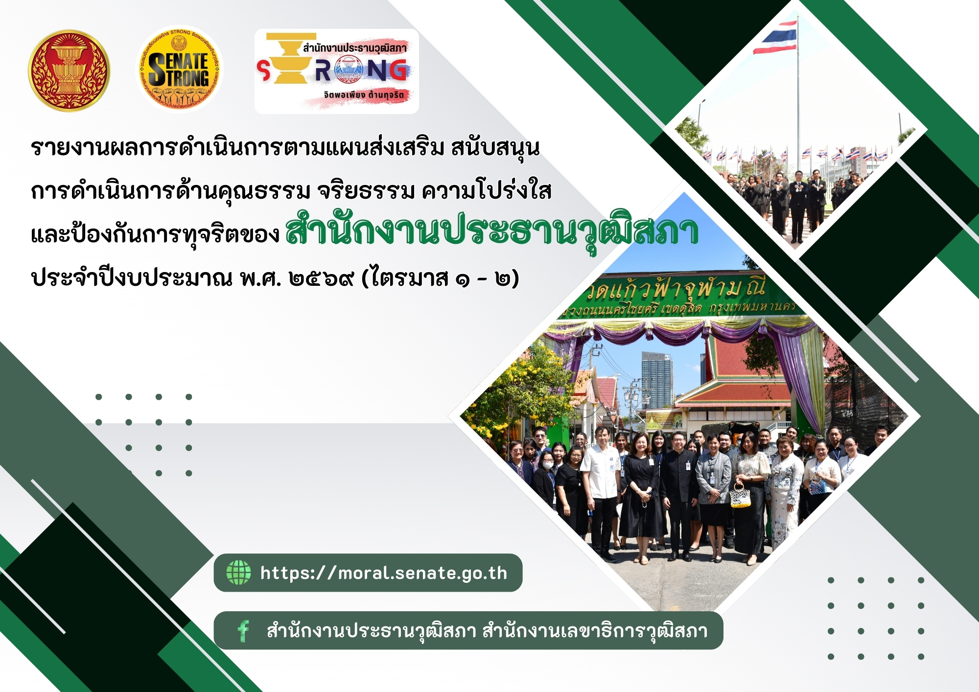- 14.3 รายงานผลการดำเนินการสำนักที่มีผลงานส่งเสริมตามประมวลจริยธรรมเจ้าหน้าที่ของรัฐสภาและความโปร่งใส (30 ก.ค. 69)