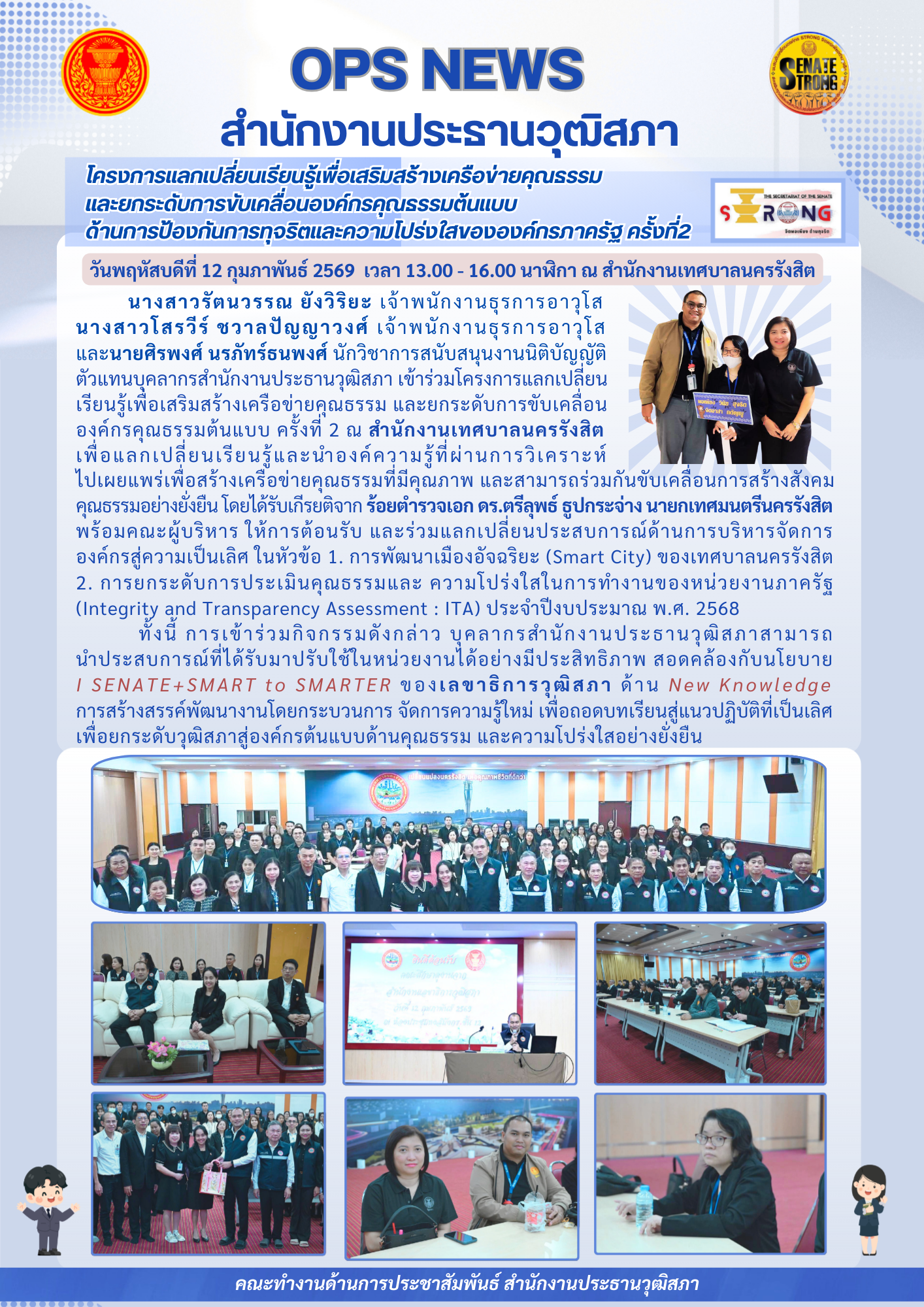 - 2. การแลกเปลี่ยนเรียนรู้ด้านการป้องกันการทุจริตกับหน่วยงานภายนอก/วิทยากรภายนอกสังกัดรัฐสภา (20 มี.ค 69)