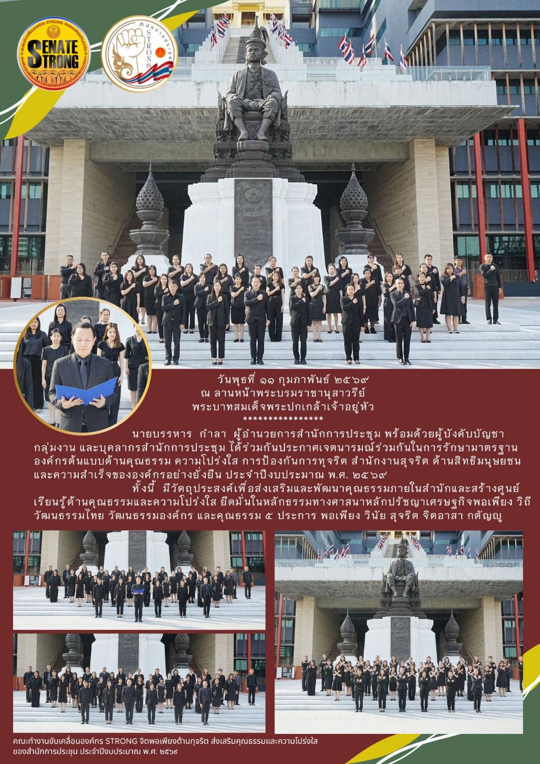 - 4. การคัดเลือกบุคลากรผู้มีคุณธรรมและจริยธรรมดีเด่นตามประมวลจริยธรรมเจ้าหน้าที่ของรัฐสภา (20 มี.ค 69)