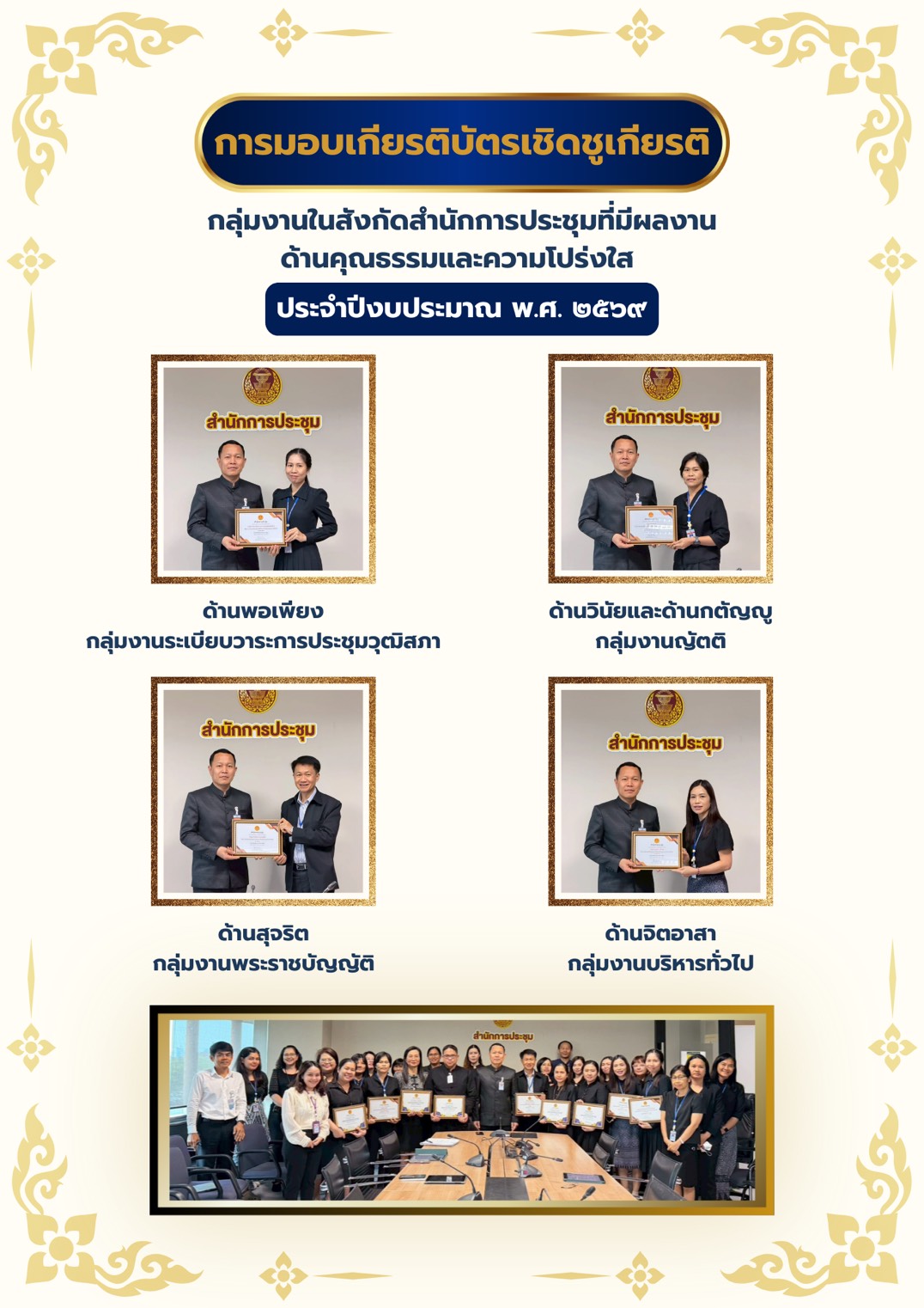 - 5. การยกย่องเชิดชูกลุ่มงาน/สำนัก/หน่วยงานที่มีผลงานด้านคุณธรรมและความโปร่งใส (20 มี.ค 69)