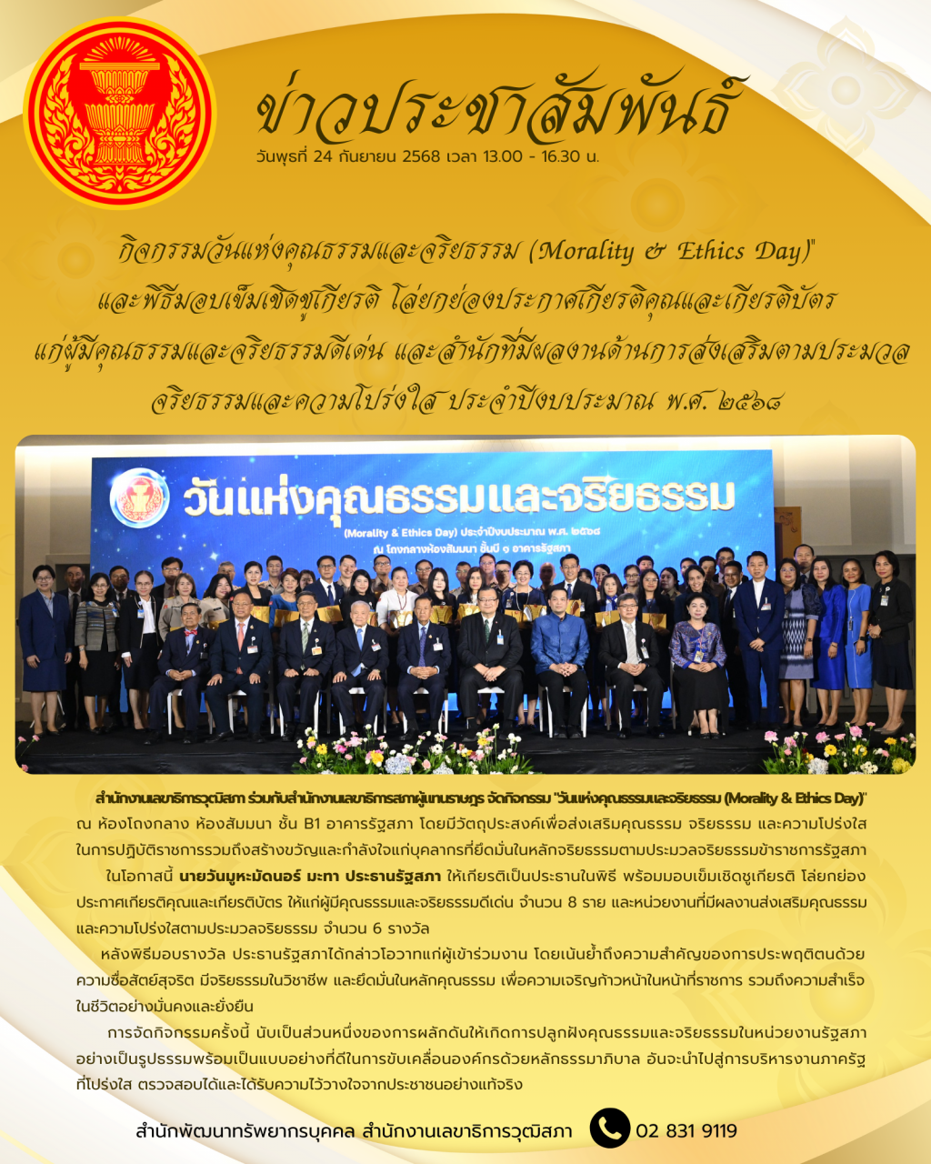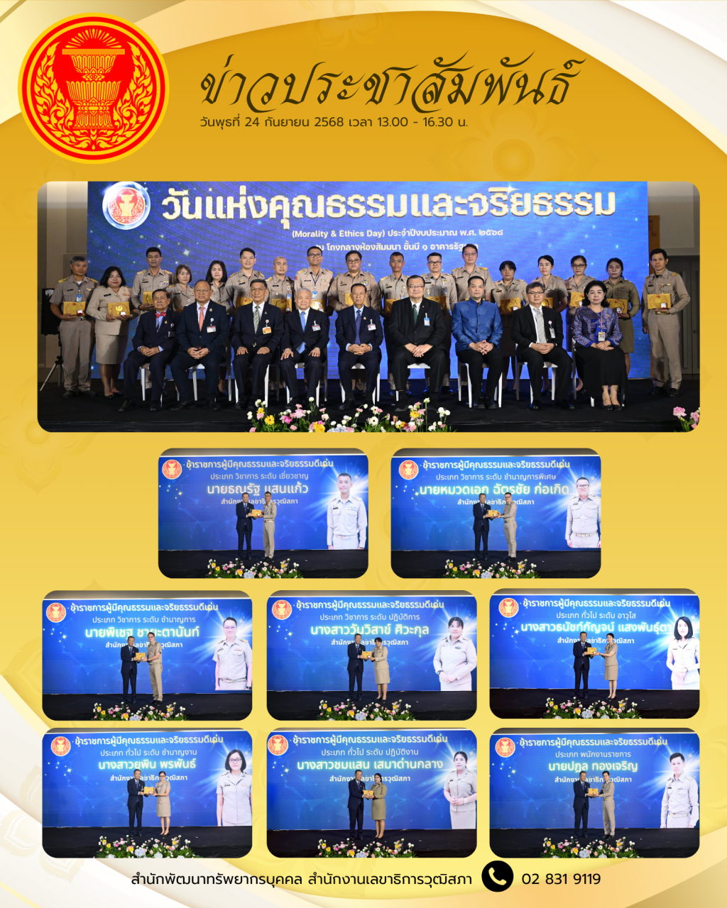 - 8. การคัดเลือกสำนักที่มีผลงานด้านการส่งเสริมตามประมวลจริยธรรมและความโปร่งใส