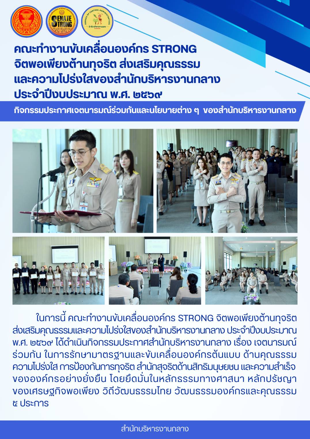 กิจกรรมประกาศเจตนารมณ์ร่วมกันและนโยบายต่าง ๆ ของสำนักบริหารงานกลาง