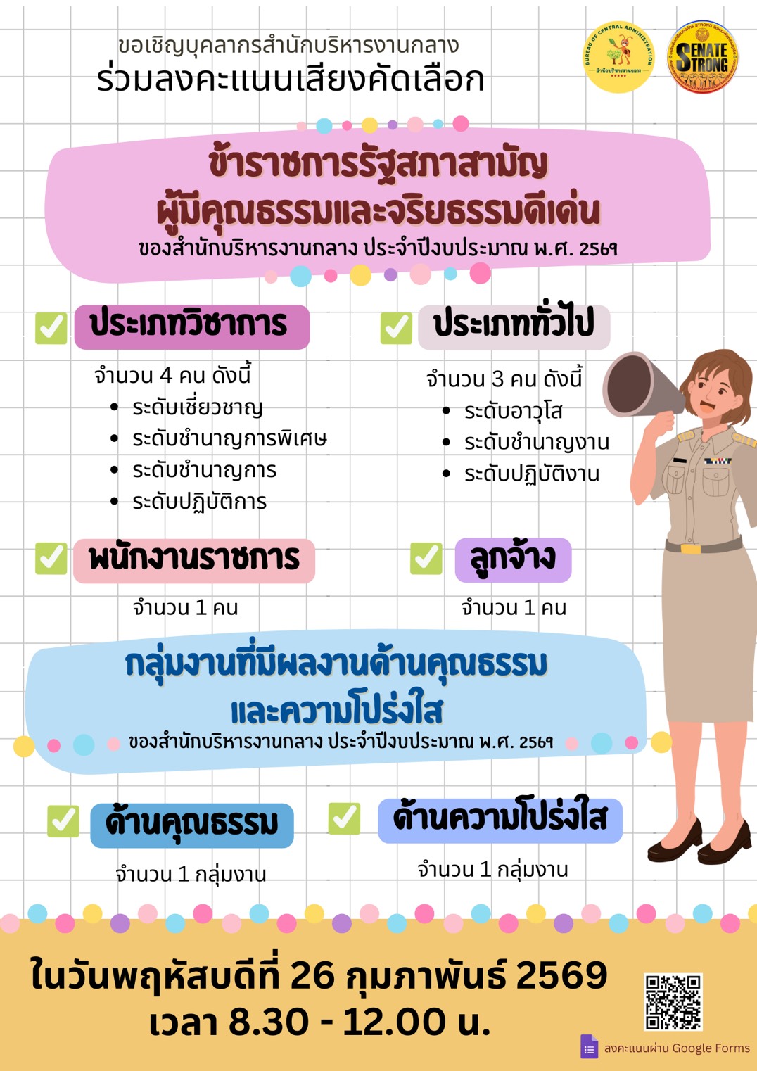เชิญชวนลงคะแนนคัดเลือกกลุ่มงาน/สำนัก/หน่วยงานที่มีผลงานด้านคุณธรรมและความโปร่งใส
