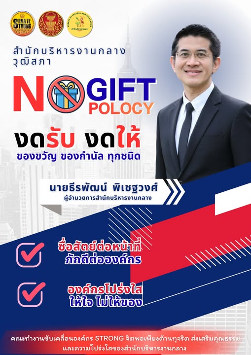 การประกาศนโยบาย "สำนักบริหารงานกลางประกาศงดรับ งดให้ (No Gift Policy)"
