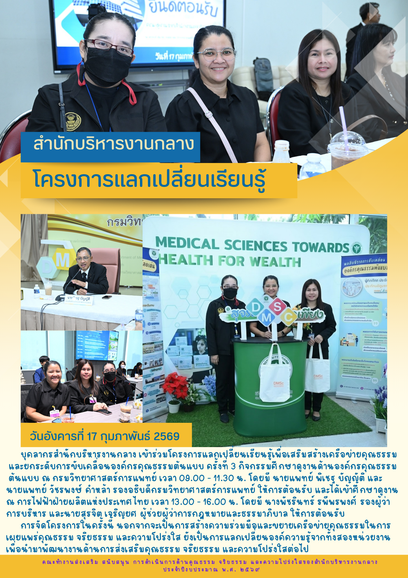 บุคลากรเข้าร่วมกิจกรรมแลกเปลี่ยนเรียนรู้ด้านการป้องกันการทุจริตกับกรมวิทยาศาสตร์การแพทย์ และการไฟฟ้าฝ่ายผลิต