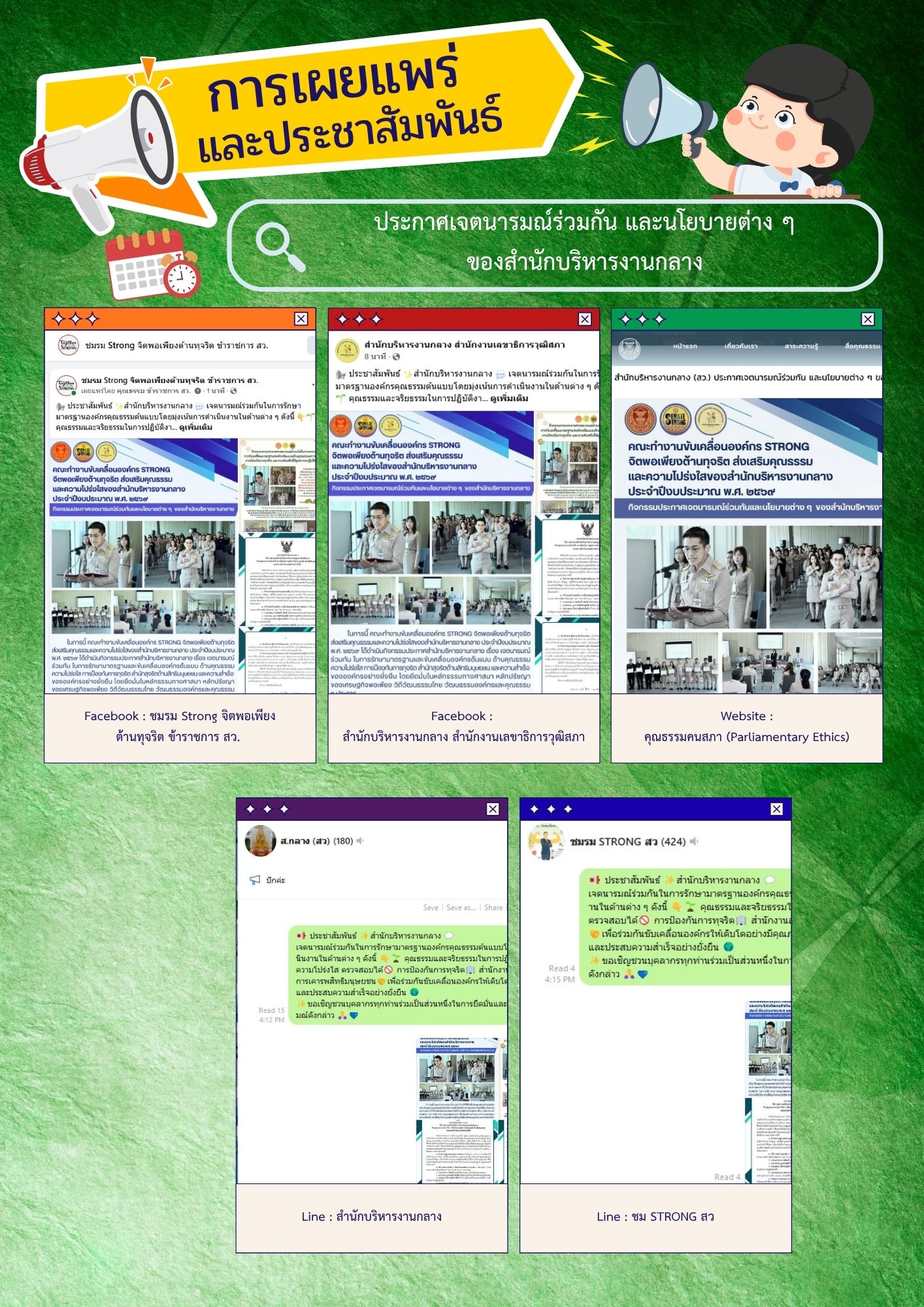 Info เผยแพร่และประชาสัมพันธ์กิจกรรมประกาศเจตนารมณ์ร่วมกันและนโยบายต่าง ๆ ของสำนักบริหารงานกลาง