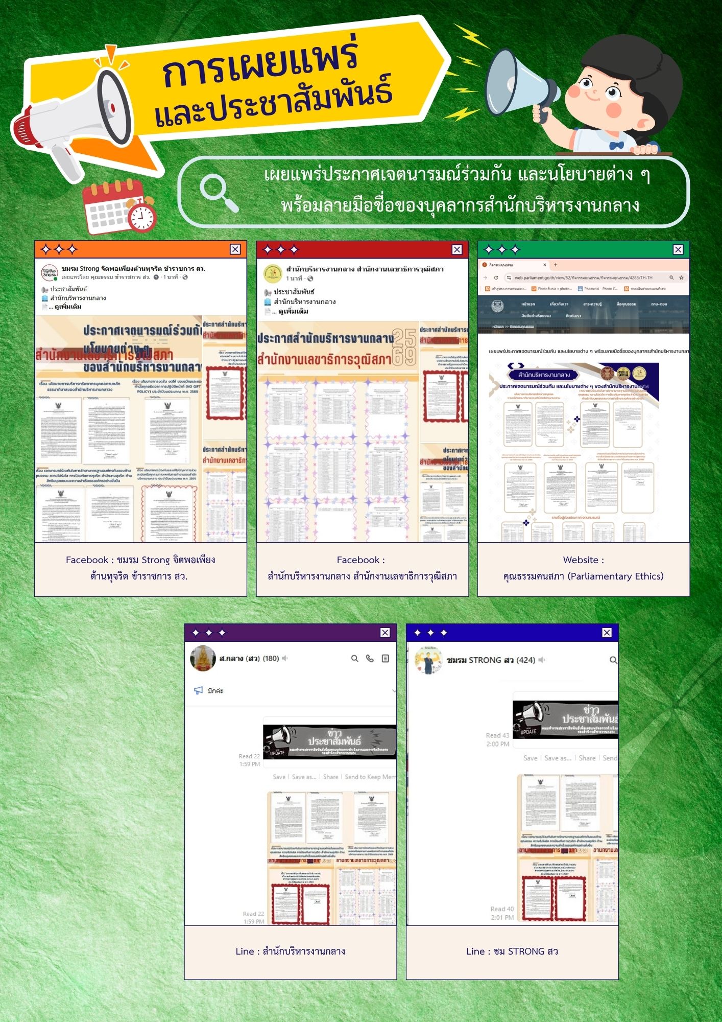 Info เผยแพร่และประชาสัมพันธ์ประกาศเจตนารมณ์ร่วมกันที่จะขับเคลื่อนองค์กรคุณธรรมต้นแบบและนโยบายต่าง ๆ