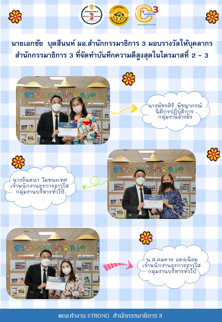 การมอบเกียรติบัตรให้บุคลากรผู้ที่มีความเสียสละ มีจิตอาสาที่ดำเนินการตามมาตรการให้คุณให้โทษในการดำเนินการตามนโยบายคุณธรรม จริยธรรม ด้านความโปร่งใส และประมวลจริยธรรมข้าราชการรัฐสภา ประจำปีงบประมาณ พ.ศ. 2566 ของสำนักกกรรมาธิการ 3 “คนดีศรีกรรม 3”